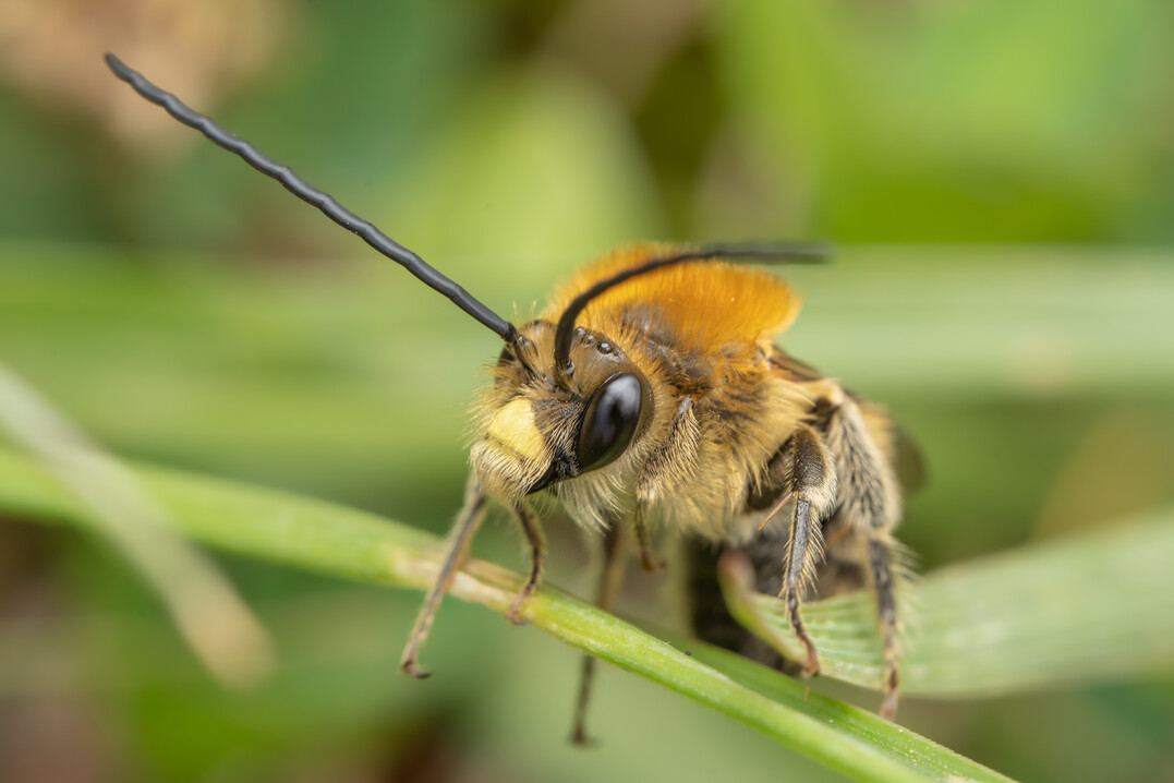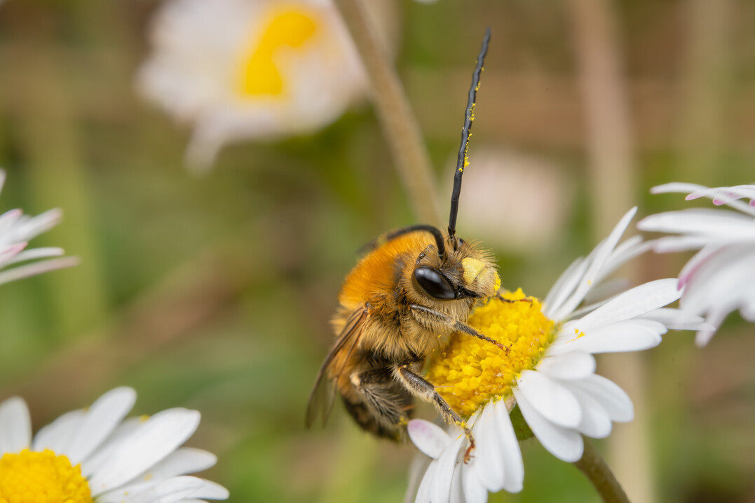 Ab Mitte April strecken sie ihre langen Fühler aus: Die Männchen der Mai-Langhornbiene (Eucera nigrescens) sind mit ihren enorm langen Antennen sehr auffällig. Die pelzig behaarten Bienen sind etwas größer als Honigbienen und vor allem auf Zaun-Wicken und anderen Schmetterlingsblütlern zu finden.